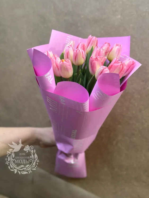 Букет из 15 тюльпанов розовых